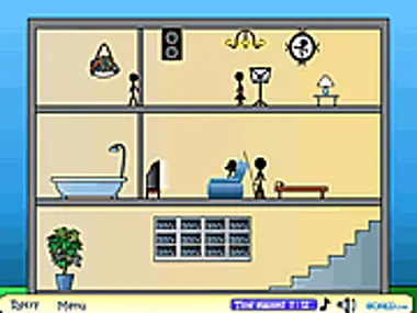 Click around the scene as you find new animations that progress the stickman storyline.