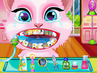 Husdjur kan också få tandröta! Så i det här fallet har den här stackars söta katten svårt att äta eftersom dess tand värker och den har verkligen dåliga tänder. Kan du hjälpa den att bota och laga dess tänder?