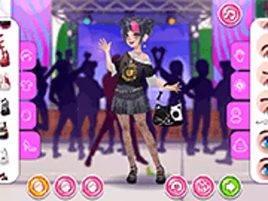 I Teen Rockstar, en del av Teen DressUp-serien, får du släppa loss din inre fashionista genom att klä upp tre snygga tonårsmodeller i kaxiga punkrockstjärneoutfits. Mixa och matcha råa läderjackor, djärva grafiska t-shirts, nitprydda accessoarer och livfulla hårfärger för att skapa den ultimata rockstjärnelooken. När dina modeller är redo att rocka scenen, ta en skärmbild och dela dina fashionabla kreationer på din profil så dina vänner kan se dem. Visa upp din punkrockflärd och bli trendsättaren i tonårsscenen!